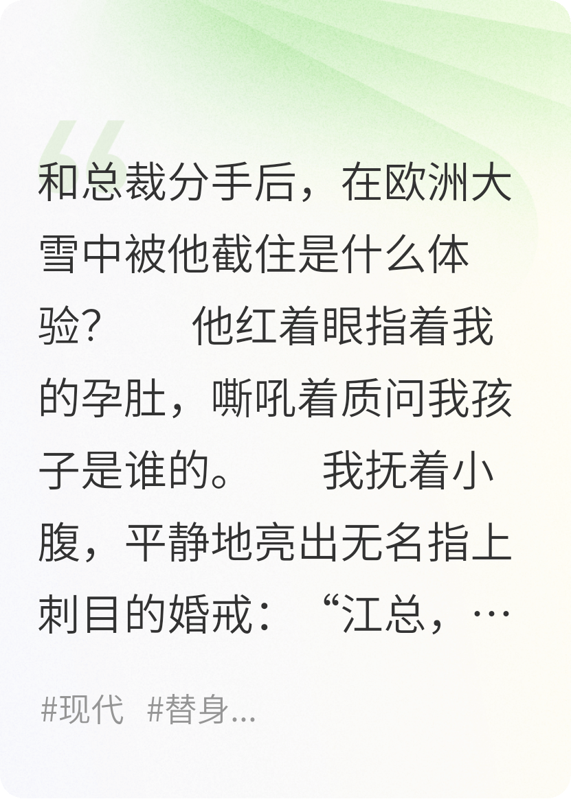 男女主角分别是【陈燃傅承洲】的救赎,大女主,豪门总裁,破镜重圆,家庭小说《太子爷正追妻呢,发现我肚子里的娃不是他的》,由网络作家“木子灵悟”倾情创作,描绘了一段动人心弦的爱情故事,本站无广告干扰,精彩内容欢迎阅读!本书共计8961字,1章节,更新日期为2025-11-15。该作品目前在本网 【jcwdmf.com】上完结。小说详情介绍:太子爷正追妻呢,发现我肚子里的娃不是他的