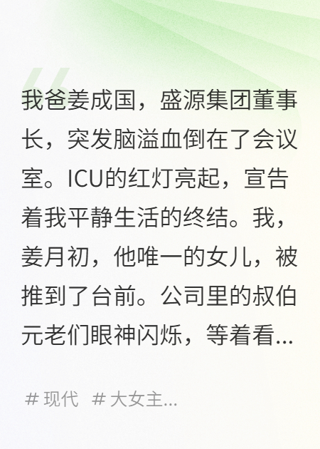 男女情节人物分别是【姜振海陈玉芬盛源集】的现代,大女主,豪门总裁,爽文,逆袭小说《病房冲喜局,亲戚劝我当败家女》,由网络作家“一x刹”所著,展现了一段感人至深的故事,本站纯净无弹窗,欢迎阅读!本书共计14916字,1章节,更新日期为2025-11-15。该作品目前在本网 【jcwdmf.com】上完结。小说详情介绍:病房冲喜局,亲戚劝我当败家女