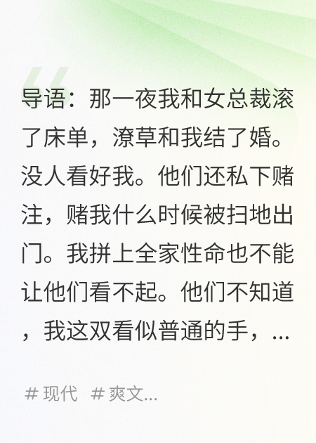 《越夜越熟》的男女主角是【诗悦秦昭章致远】,这是一本豪门总裁,相爱相杀,强强,腹黑,双面,现代言情小说,由新锐作家“玛格绿特”创作,情节精彩绝伦。本站无弹窗,欢迎阅读!本书共计99474字,82章节,更新日期为2025-11-15。该作品目前在本网 【jcwdmf.com】上连载中。小说详情介绍:高亮提示: 假淑女×真浪子 | 见色起意 | 双非C | 男小三 | HE发现丈夫出轨的那一晚,诗悦去找了个小狼狗,高跟鞋踩着小狼狗的肩膀调情时,被丈夫的好兄弟抓了个正着,从未正眼看过她的秦昭,忽然凑到她耳边引诱:“睡我绿他不是更爽?”干柴逢烈火,枯木遇春雨,两人一起上了头。那晚之后,他们继续在人前装不熟,人后直接上手扒光对方的衣服,抵死纠缠。——离婚后,他们参加共同好友的婚礼,坐一桌。秦昭当着所有人的面给她夹菜,将她推至风口浪尖,前夫哥黑脸质问:“你们很熟?”诗悦淡定如斯:“我跟你结婚四年,他是你兄弟,能不熟么?”秦昭意味深长:“是啊,熟透了。”——本文原名《熟透》;大白话又名《老公出轨后,他好兄弟拉着我偷/情》